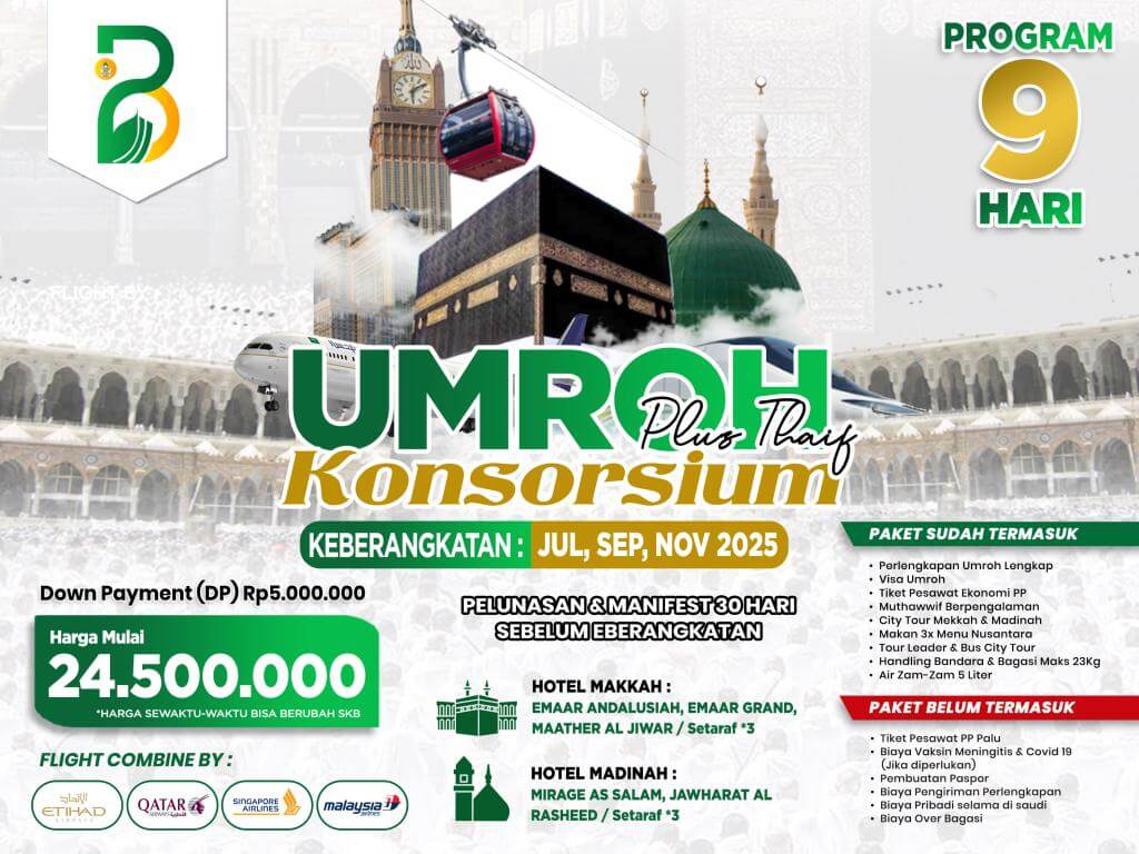 - Perlengkapan : Koper kabin, koper bagasi, tas paspor, kain ihram/mukena, sandal, buku manasik, kain seragam, syal, & sabuk